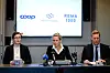 Kommunikasjonsdirektør Margrethe Gudbrandsen, daværende konkurransedirektør Tina Søreide og Magnus Reitan i Konkurransetilsynet på en pressekonferanse i august 2024 i forbindelse med ileggelsen av milliardgebyrer til tre dagligvarekjeder.Foto: Thomas Fure, NTB