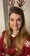 Førsteamanuensis Sofie Høgestøl klar for jul under en podcast-innspilling.Foto: Privat