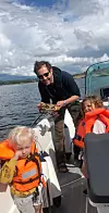 Fisketur med familien ved hytta utenfor Stavern.Foto: Privat