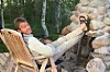 Når Jens Johan Hjort ikke fordyper seg i hjemmelekser fra forgjenger Erik Keiserud og Advokatforeningens generalsekretær Merete Smith, slapper han gjerne av foran sin selv-lagde utepeis. Foto: Privat