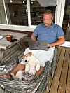 Han kaller det bare Barfotkontoret... Foto: Privat