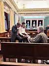 Trine Skjelstad Jensen da hun hadde prøvesak i Høyesterett i fjor. Her samme en av sine to veiledere, Thomas Horn.Foto: Privat
