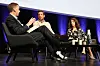 Zack Kass (i midten) deltok også i en påfølgende panelsamtale med administrerende direktør i Law Society of England and Wales, Ian Jeffrey (t.v.) og IBA-president Almudena Arpón de Mendívil (t.h.).Foto: Kari Hegstad