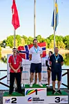 Anders Foss toppet pallen under årets EM. Pierre Cesinski fra Sveits tok sølv (venstre), mens svenske Henrik Tengius fikk bronsemedaljen (høyre).Foto: IWWF