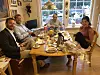 I Arendal er det så å si umulig å oppdrive et hotellrom, så DLA Pipers utsendte leide seg et lite hus for anledningen. Fra v. partner Hans Christian Brodtkorb, MP Kaare Oftedal, Reiss-Andersen og COO Marianne Hofbauer.