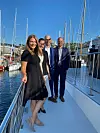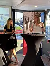 Ivana Filipovic, Mari Reitzel Bjerke, Pål Martin Abell og Aksel S. Tannum arrangerte debatt ombord i el-fergen Legacy of the fjords i Arendal.Foto: Nina Schmidt