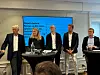 Næringslivspanelet i Haavinds debatt, f.v.: Olav Skalmeraas (administrerende direktør, Norge Mineraler), Julie Wedege (SVP Corporate Politics and Ownership, Statkraft), Johannes Namstad Dobson (konserndirektør Stab, Eviny), Knut Vassbotn (administrerende direktør, Deep Wind Offshore) og Marius Vahl (fagsjef EU/EØS, Norsk Industri, Brussel-kontoret).Foto: Kari Hegstad
