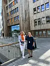 Anne Sofie Bjørkholt og Cathrine Stornæs foran BAHR-bygget.Foto: Tinius Svendsen