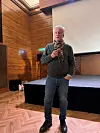 - Klomsæt har en måte å være på i offentligheten som er utfordrende for mange, som er spesiell og som tar fokus bort fra det arbeidet han gjør, sa Bergestuen fra scenen på Håndverkeren.