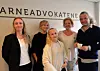 Barneadvokatene DA holder til i nyoppussede kontorlokaler sentralt på Vinderen. Fra venstre advokat Linn B. Doornich, advokatfullmektig Karoline K. Dale, advokat Trude Trønnes, advokat Thea Totland og advokat Fridtjof P. Gundersen.