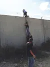Unggutter klatrer på muren.