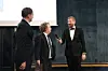 Konferansier Odd Magnus Williamson la ikke skjul på sin takknemlighet overfor SANDS-partnere Lars Tormodsgard (t.v.) og Morten Hugo Berger . Den populære komikeren er nemlig tidligere Westerdals-elev - og en av saksøkerne som vant frem!