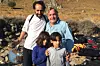 Folk har ikke med seg mer enn en liten pose med eiendeler, men er takknemlige for å ha kommet til land. Her er Kim Gerdts med en far og hans to døtre. - Vi snakker ikke samme språk, men kroppsspråk er internasjonalt, sier Gerdts.