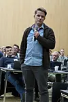 Olle Nohlin grep mikrofonen under "åpen talerstol" på Forsvarergruppens høstseminar i 2023.Foto: Thea N Dahl