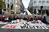 Constance Jessen Holm, advokat i Lund & Co og medlem i Advokatforeningens menneskerettighetsutvalg. Her foran aksjonister på Karl Johan.Foto: Kari Hegstad