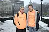 Advokatforeningens forrige leder Erik Keiserud (t.v.) og nåværende leder Jens Johan Hjort aksjonerte for å få forhandlingsrett om salærsatsen foran Stortinget i november i fjor. Foto: Fadum