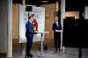 Toril Marie Øie under torsdagens tvisteløsningsseminar i samtale med Haavind-partner Johnny Johansen. I bakgrunnen skimtes Mikal Brøndmo.Foto: Hoan Nguyen/Haavind