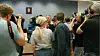 Massivt medieoppbud da ankesaken mot Eirik Jensen og Gjermund Cappelen startet tirsdag. Her er det advokat Benedikt de Vibe som blir fotografert av pressen.