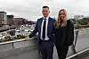 André Michaelsen og Maiken Lenes på Blomsterbrua ved Solsiden, like utenfor kontoret i Trondheim.Foto: Kari Hegstad