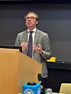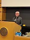 Hans innlegg handlet om trender i EØS-retten, nærmere bestemt om menneskerettigheter, prosessuelle rettigheter, rett til fri bevegelighet for personer og klima- og miljørett.