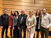 Fra høyre: Jens Edvin Skoghøy, høyesterettsdommerne Magnus Matningsdal, Wenche Elizabeth Arntzen, Kine Steinsvik, Tonje Vang og Cecilie Østensen Berglund. Ytterst EFTA-dommer Michael Reiertsen. På andre rad høyesterettsdommer Aage Thor Falkanger.Foto: Nina Schmidt