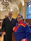 Johannes Mattis Anti er daglig leder i Reinbeitedistrikt 13. Her sammen med sametingspresident Silje Karine Muotka.Foto: Nina Schmidt