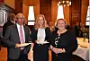 Advokat Camilla Vislie med høyesterettsdommer Borgar Høgetveit Berg og justitiarius Toril Marie Øie.