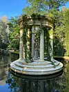 Fra Havlystparken på Ramme gård. I parken arrangeres omvisninger, konserter og teaterforestillinger. Paviljongen er også å se som filmkulisse i den populære julekalenderen Snøfall.Foto: Nina Schmidt