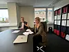 - Jeg gleder meg til å bli kjent med alle de flinke folkene i Advokattilsynet, sier Tonje Skjelbostad. Her med styreleder Anders Brosveet.Foto: Nina Schmidt