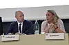 Tyrhaug i panelsamtale med den britiske advokaten Georgia Dawson, fra advokatfirmaet Freshfields Bruckhaus Deringer i London.Foto: Kari Hegstad