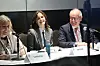 Emma Watson (i midten) hadde selskap av sin far, Christopher Watson (t.h.), i panelet. Han jobber som advokat i advokatfirmaet CMS i London og er med i IBAs mangfolds- og inkluderingsråd. CMS er for øvrig også representert i Norge som CMS Kluge. Med i rådet er også den britiske advokaten Sara Carnegie (t.v.).Foto: Kari Hegstad