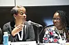 Advokat Michelle Behnke fra USA (t.v.), her sammen med dommeren Winfred Naigaga fra Uganda (t.h.).Foto: Kari Hegstad