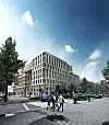 Advokatforeningen vil ha inngang fra Universitetsgaten. Her bygget sett fra Pilestredet (ring 1). Illustrasjon: Entra Eiendom