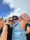 - Jeg er veldig sosial og setter jeg av tid til å være mye med venner. Her fra de juridiske vinterleker. Til venstre Lillian Hjemeland.Foto: Privat