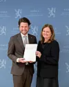 Mandag kunne hun overrekke NOU 2025:11 Revidert konkurranselov til statssekretær Vegard Grøslie Wennesland i Nærings- og fiskeridepartementet.