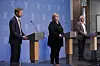 Helse- og omsorgsminister Bent Høie, statsminister Erna Solberg, og leder i den nyoppredede Koronakommisjonen Stener KvinnslandFoto: Torbjørn Kjosvold, Forsvaret