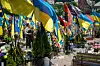 på takknemlighet. Rundt dem sang en folkemengde ukrainske kampsanger, for å