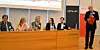 Fra venstre Odd Ivar Biller, Live W. Lindholm, Anne Sofie Bjørkholt, Ingrid Høstmælingen og Trond Riiber knudsen. Terje Svabø (stående) ledet debatten.