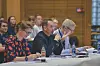 Styringsgruppa som har arrangert Oslo Legal Hackathon. Bak fra venstre: Haakon Føyen, Julie Eldøy, Beate Martine Kalvøy, Merete Nygaard, Rikke Øksnes, Helle Hatten og Karen Lyche Oppegaard. Foran fra venstre: Henrik Fagerholt, Kristian Skeie, Joachim Edin, Christopher Helgeby, Tobias Mahler, Vegard Fløtre, Dan Sørensen og Arne Slaatta. Foto: Bjørnar Grimstad.