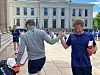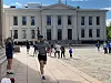 Sammen med høyesterettsdommer Ragnhild Noer fra den dømmende makt og regjeringsadvokat Fredrik Sejersted fra den utøvende makt løp han rundt Universitetsplassen som en kick-start på stafetten, som egentlig starter i Drammen senere på dagen.