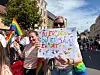 Fra fjorårets parade. Mange lager egne plakater,Foto: Ida Sofia Vaa, Advokatforeningen