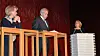 Merete Smith og Tor-Aksel Busch på scenen med debattleder Anne Grosvold.