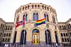 Regnbueflagget ble heist utenfor Stortinget i forbindelse med Pride-markeringen i juni 2022.