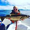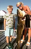 Randi og sønnen Herman med en selvfisket torsk på tolv kilo.