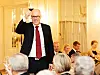 Hallvard Østgård er kjent som en munter mann som gjerne griper ordet i festlige lag. Her fra Advokatforeningens årstalemiddag i fjor, der han utbragte en skål. Foto: Monica Kvaale