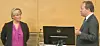 Her overrekker Hans Henrik Scheel skatteutredningen til finansminister Siv Jensen. (Foto: Finansdepartementet)