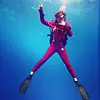 - Det er livet under vann vi er mest interessert i, forteller Anne Nesheim. Selv var hun fast bestemt på at hun ikke ville ha tradisjonelt svart dykkerutstyr. Foto: Privat/@nesheimanne