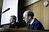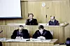 Fra rettssakens første dag i Frostating lagmannsrett, 18. oktober 1982. Tiltalte Arnfinn Nesset sitter bakerst til høyre. Foran sitter hans forsvarere Alf Nordhus (t.v.) og Morten Gunnes (t.h.).Foto: Erik Thorberg / NTB