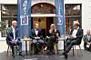 Ved åpningen av TechTorget ble det arrangert en paneldebatt om digital samhandling mellom advokater og domstolene. I panelet satt tingrettsdommer Espen Bjerkvoll (t.v.), Simonsen Vogt Wiig-partner Christian Reusch, avdelingsdirektør Ingrid Olsen i DA og Hjort-direktør Christopher Helgeby. - Vi er avhengig av enkle løsninger som er forståelige og som alle kan bruke, som ikke oppleves som en ekstra komplikasjon for det vi gjør og som gjør at vi får kommunisert med domstolene, motparter og forvaltningen på en god måte, sa advokat Christian Reusch under debatten.Foto: Kari Hegstad