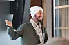 Han får støtte av utvalgskollega Jennifer Obeng.